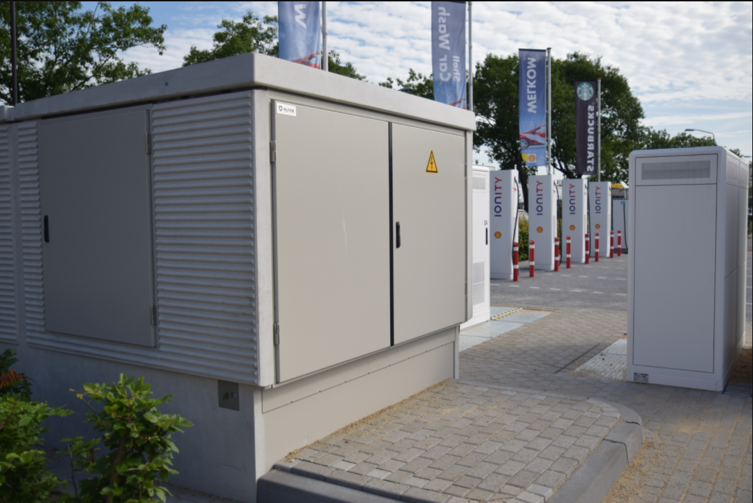 IONITY has implemented a network of fast charging stations for EVs in Europe, for which Alfen has facilitated the local grid connection. IONITY is building a network of reliable and powerful fast charging stations along major routes across the continent. These stations are comfortable to use and allow fast-charging due to their capacity of up to 350kW. This capacity requires an enormous amount of electricity. Therefore, the available local grid connection usually needs to be expanded with a transformer substation.